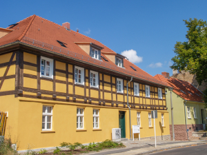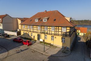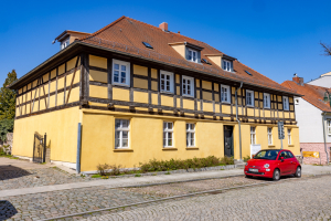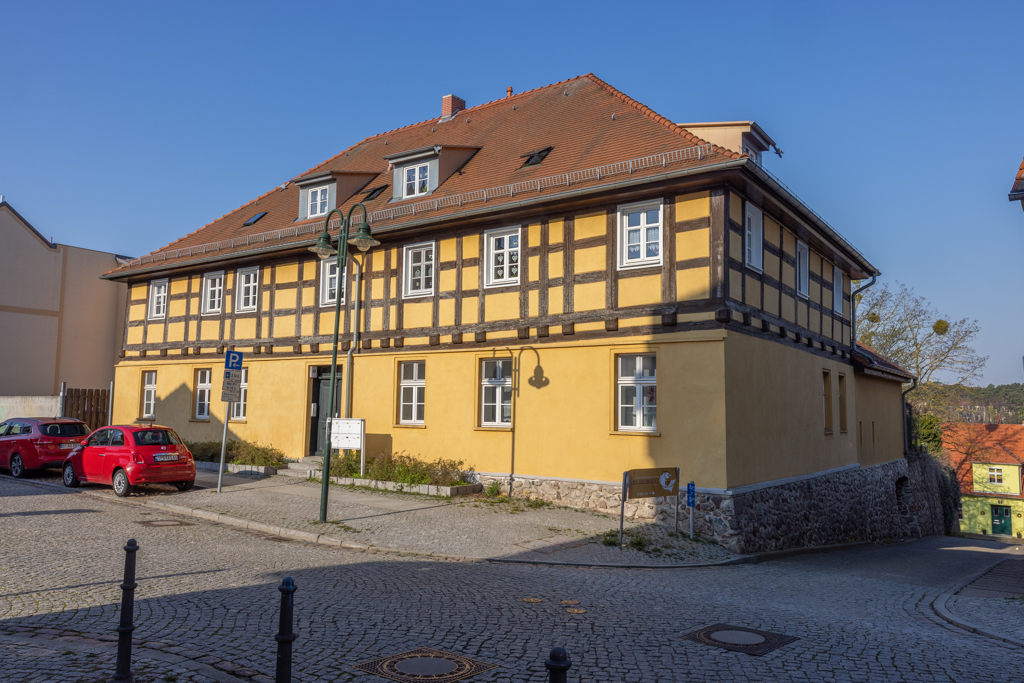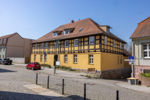 Im Zuge der Modernisierung und Instandsetzung des denkmalgeschützten Wohngebäudes mit Städtebaufördermitteln wurde das zuvor verputzte Fachwerk im Obergeschoss freigelegt. Der rückwärtige Seitenflügel wurde saniert, während das Hofgebäude leider im Zuge der Arbeiten verloren ging. Das heute vom Bauherrn selbst und weiteren Familien bewohnte Gebäude stellt einen Blickfang in der Georg-Kurtze-Straße dar, der bis in den Marktplatz hineinwirkt.