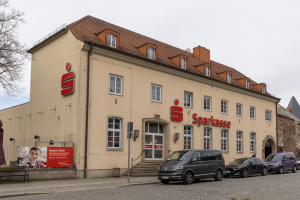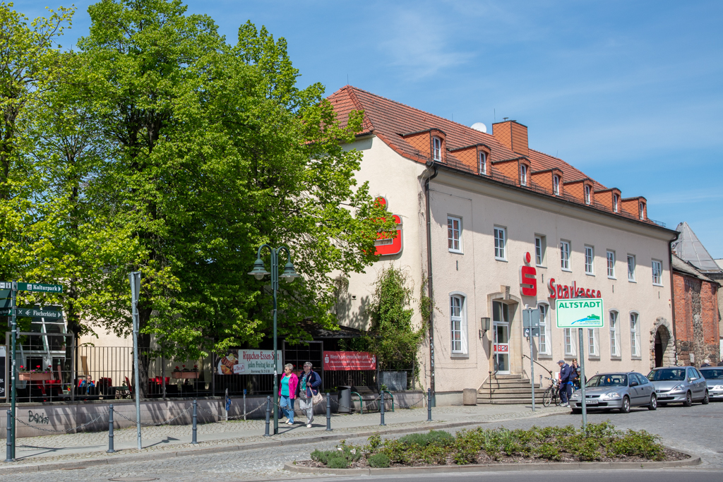 Im Zuge der Kreisreform entstand 1993 aus den drei Kreissparkassen Strausberg, Seelow und Bad Freienwalde die Sparkasse Märkisch-Oderland. Als neuer Sitz wurde in den neunziger Jahren die Fläche vor der Stadtmauer, die an das bisherige Sparkassengrundstück Große Straße 1 grenzte, auserkoren. Der Abbruch der historischen Gaststätte und der große Neubau am Altstadteingang Ende der 1990er Jahre waren nicht unumstritten. Heute befindet sich im Erdgeschoss des Sparkassengebäudes wieder eine Gaststätte. Besonders beliebt bei Einwohner und Besuchern ist wie eh und je der Biergarten zur Großen Straße.