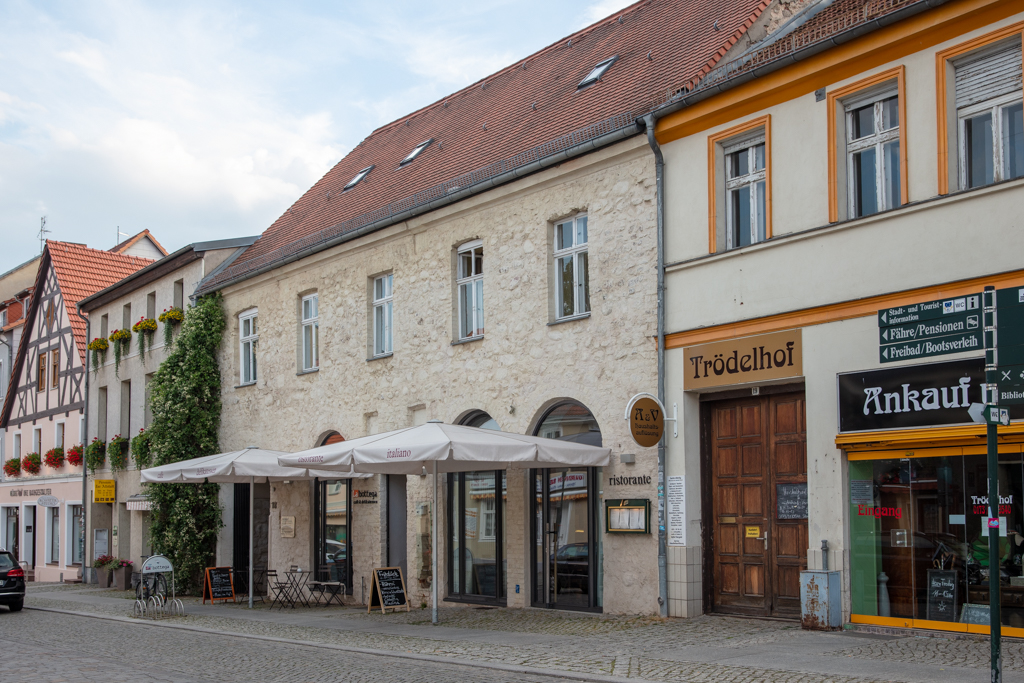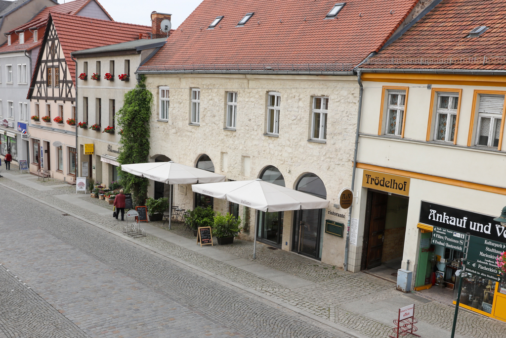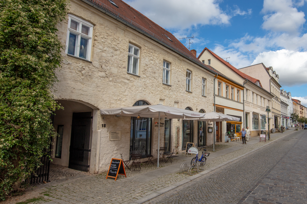 Heute bleiben Besucher gern vor der spannenden Fassade stehen, besuchen den Laden mit den romantischen Gewölben und schauen neugierig auf den Hof. Denn hier irrte Theodor Fontane: In seinen „Wanderungen durch die Mark Brandenburg“ war dem märkischen Nationaldichter Strausberg keine Zeile wert. Dabei können unsere Häuser sehr wohl Geschichten erzählen!