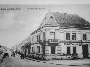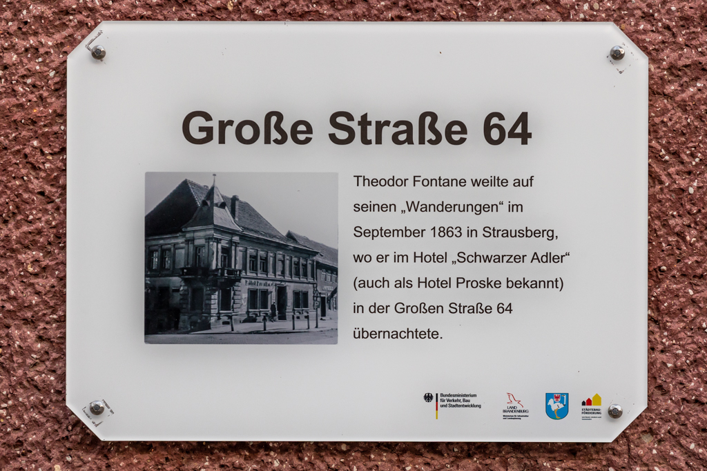 Das massive Gebäude entstand wohl in der ersten Hälfte des 19. Jahrhunderts auf den Grundmauern eines Vorgängergebäudes. Nur noch den ältesten Einwohnern ist die einstige Beherbergungsstätte als „Hotel Proske“ ein Begriff. Und als solches zweifellos stadtgeschichtlich von großer Bedeutung! Die Historikerin und Fontane-Expertin Gabriele Radecke fand nämlich heraus, dass der bedeutendste Schriftsteller der Mark - entgegen anderslautenden Bekundungen - tatsächlich vom 29. zum 30. September 1863 in Strausberg weilte. Die frühere Direktorin des Stadtmuseums, Christa Wunderlich, recherchierte das spätere Hotel Proske als seinen Übernachtungsort. Zu Fontanes Zeiten trug es allerdings noch die Bezeichnung „Hotel Schwarzer Adler“.