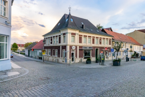 Die Große Straße 64 steht an der wichtigsten Kreuzung der Altstadt: Direkt an der Einmündung der Müncheberger in die Große Straße. Von hier aus führte in alten Zeiten der Weg nach Osten zum Müncheberger Tor, nach Norden zum Wriezener und nach Süden zum Landsberger Tor. Der herausragenden städtebaulichen Bedeutung wird das Gebäude dank des leicht vorgerückten Eckturms auch städtebaulich gerecht. Früher zierte es sogar eine kleine Wetterfahne.