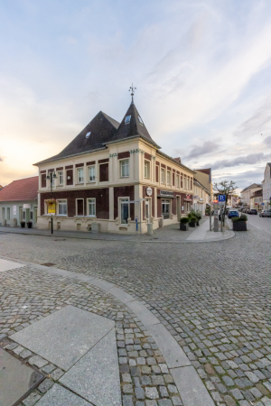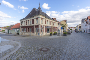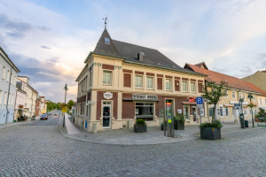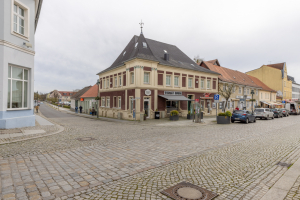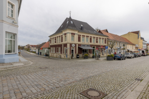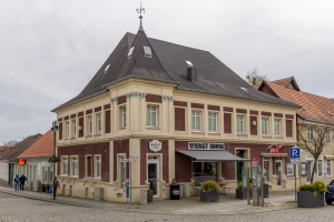 Nach Osten entlang der Müncheberger Straße läuft die Bebauung in eingeschossigen Nebengebäuden aus. Dort befand sich früher die Ausspanne der Pferde und wohl auch die Aborte des Hotels. Das heutige Wohn- und Geschäftshaus wurde in den Nuller Jahren mit einem Zuschuss im Rahmen der Förderrichtlinie „Kleinteilige Maßnahmen zur Verbesserung des Ortsbildes“ gefördert.