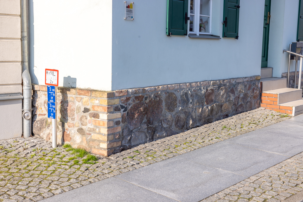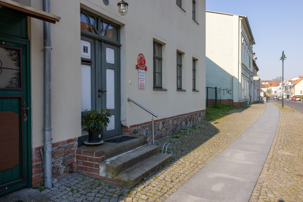 Wie beim Nachbargebäude Nr. 2 steht es auf einem markanten Feldsteinsockel. Das Grundstück zieht sich bis an die Stadtmauer heran weit nach hinten. Dort befinden sich mehrere klinkersichtige Nebengebäude.