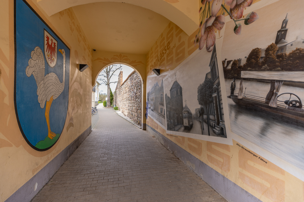 Die Altstadt von Strausberg wurde über Jahrhunderte von einem rund 1800 Meter langen Stadtmauerring umgeben. Vermutlich legten unsere Vorfahren nach 1200 um das Stadtgebiet zunächst Erdwerke und einen Palisadenring aus angespitzten Baumstämmen an. Aus der Altstadt heraus führten drei wichtige Wege, die jeweils durch Tore gesichert wurden: Im Süden das Landsberger Tor, im Osten das Müncheberger Tor und im Norden das Wriezener Tor. Zusätzlich führte die Kietzer Pforte zur Dienstleutesiedlung am Fischerkietz.